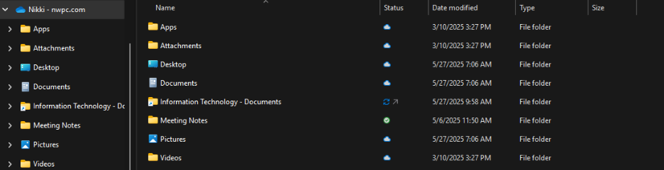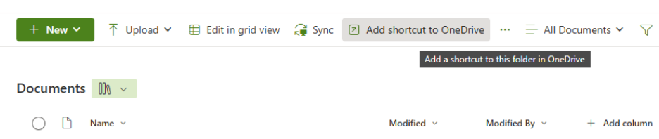 Adding the files to OneDrive will cause them to show up in Windows File Explorer similar to how they showed up in the Y drive. To add to OneDrive from within the folder you want to add (it is recommended to add the Files folder itself), Click on the Add shortcut to OneDrive button in the center toolbar (Fig. 1). Once you click this, a small notification will be shown at the bottom saying that it has been added. Once it is added, it will take a few moments for it to show up under your OneDrive folder in Windows Explorer (Fig. 2). From within this folder that is created in OneDrive, you can open files locally, move or manage files as you normally would. Copying or saving a file to this folder will upload it to SharePoint.